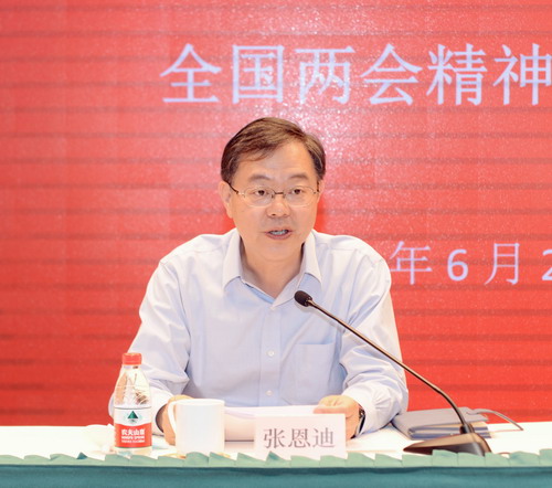 张恩迪强调,全市党员要将学习宣传贯彻习近平总书记重要讲话精神和全国两会精神,作为指导当前各项工作的首要政治任务,凝聚奋斗伟力;要围绕中心、服务大局,不断加强自身能力建设,将“抗疫精神”转化为参政履职动力,认真抓实抓细中央交给上海的各项重要任务,进一步深化改革开放,加快创新发展,实现疫情防控和经济社会发展两手抓、两手硬、两手赢。特别是要发挥致公党侨海特色优势,团结侨海力量,凝聚最广泛的政治同盟,共同实现中华民族伟大复兴。