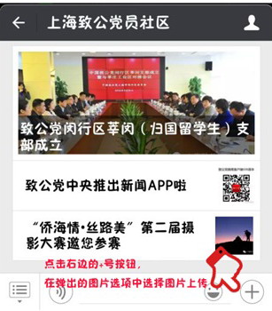 1、手机类。关注“上海致公党员社区”微信公众号,在底部的对话框进行上传。